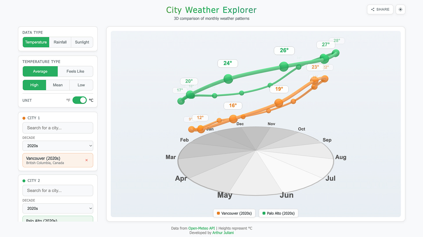 ☔️ Weather Explorer: a fun little pet project that helps people visually understand and compare the weather of different cities. But also a reminder for me on why I think it’s so important that everyone should be able to cook up their own little digital pet projects…. so you can explore your curiosity through an active lens.