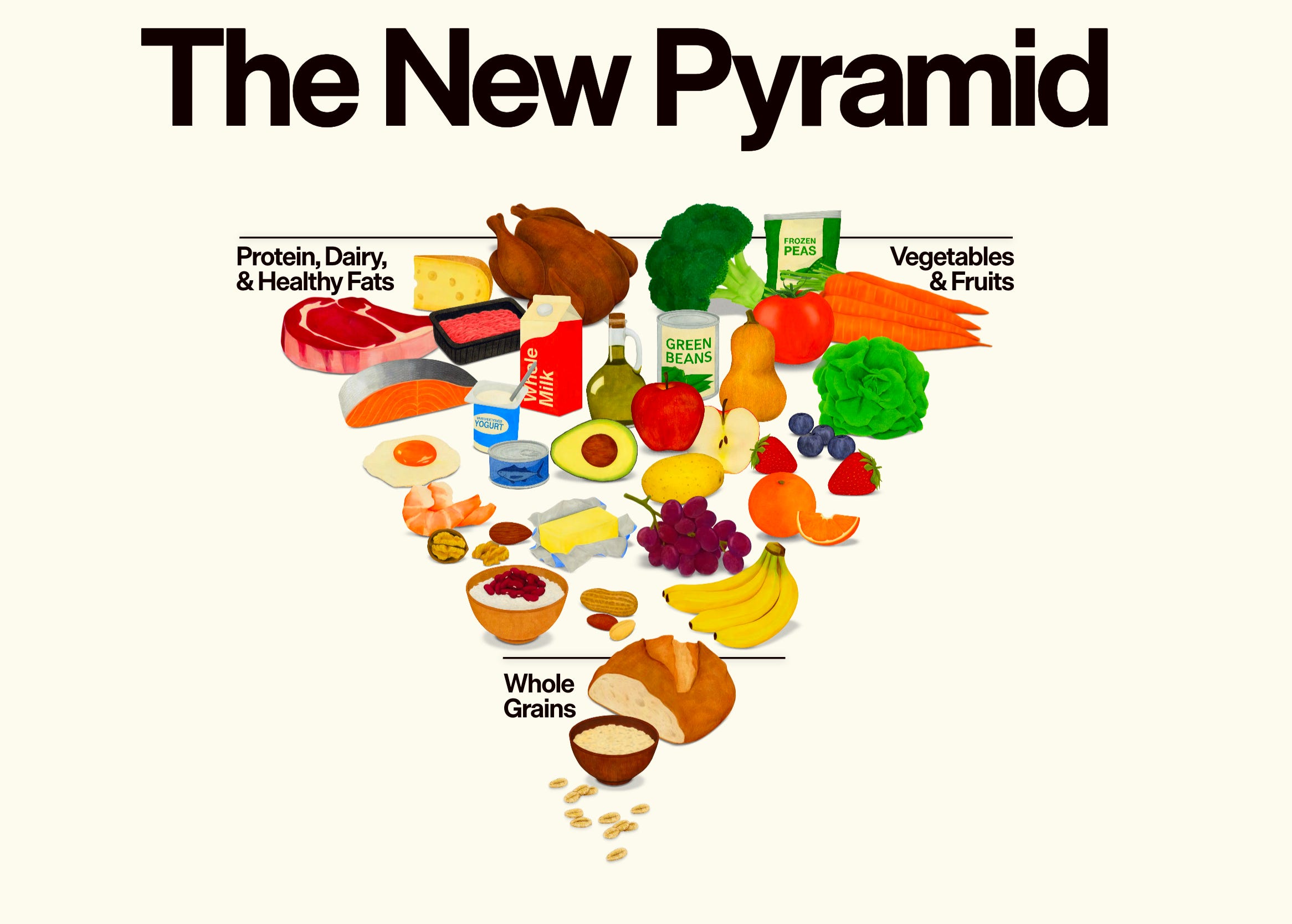 🥦 New Food pyramid: I grew up in an Indian household, which is to say, I was given lemon ginger tea when I had a cold, turmeric milk for a cough, and good old ghee to make plain roti or kitchidi tasty. My mum was an OG “real food” advocate and was skeptical of anything artificial - whether it was aspartame, cough syrup or even margarine - when a natural option was available. That lesson has always stayed with me, through the different fashions and fads of diets which would find different villains - it’s Fat! No Sugar! No Salt! She would just shake her head and say: just have the real thing, just in moderation.